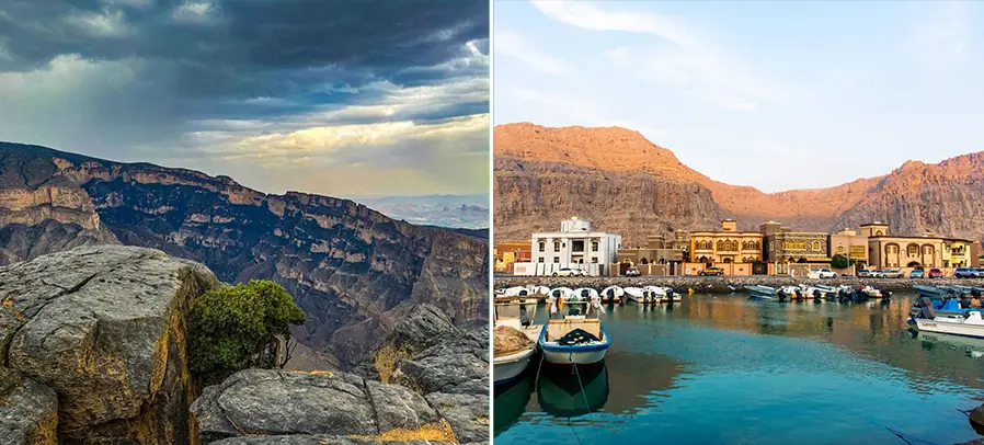 Khasab’s Musandam Peninsula climate shaped Bedouin traditions, from insulated mud dwellings to light cuisine. Winter attracts migratory birds, while warm waters host dolphins, whales, and colorful fish.