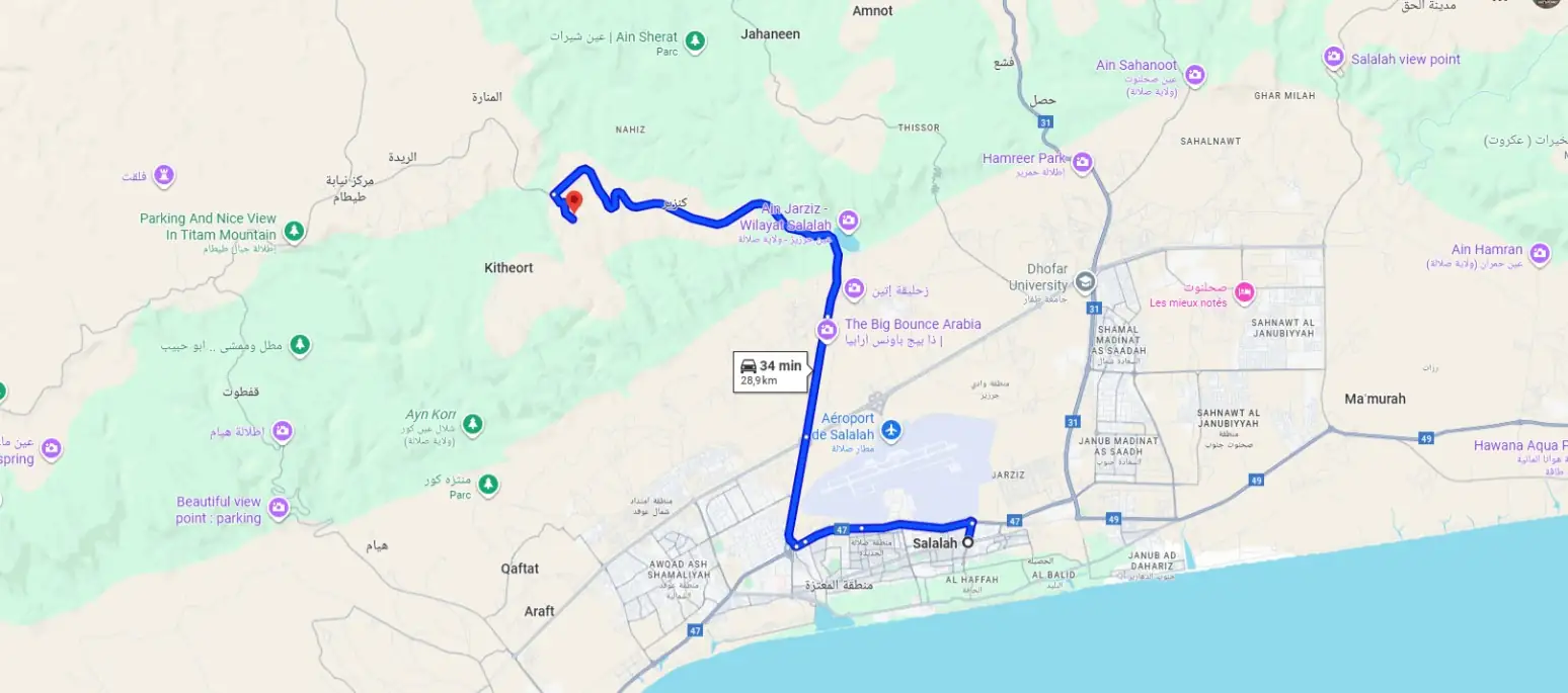 Easily accessible by car, the site offers parking and a serene walking path to the tomb. Nearby attractions include Wadi Darbat, Al Baleed Archaeological Park, and Mughsail Beach, making it an essential stop on any Salalah itinerary.