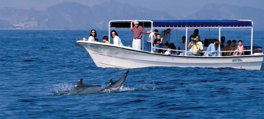 One of the most popular water activities in Oman is joining a dolphin-watching tour. Visitors can spot spinner dolphins, bottlenose dolphins, and common dolphins leaping through the waves—a sight perfect for families and nature lovers.