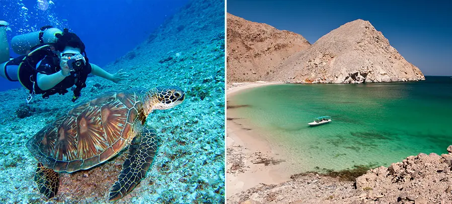 For certified divers and adventurous travelers, scuba diving Oman offers world-class underwater experiences. The country’s dive sites are home to turtles, reef sharks, colorful fish, and impressive coral walls.