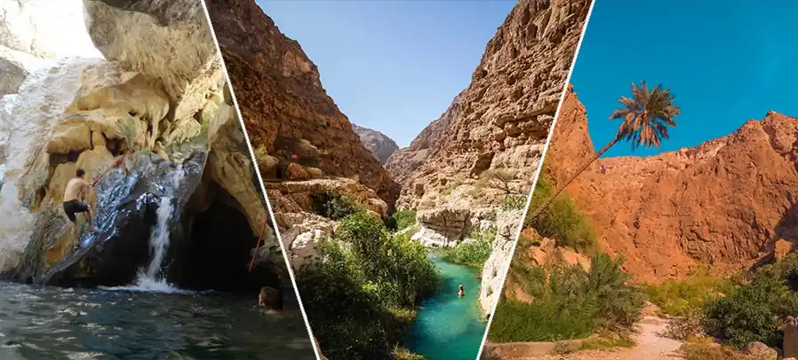 The highlight of Wadi Shab is its secret cave, home to a small waterfall inside. To reach it, you’ll swim through a narrow passage between the rocks — a thrilling experience. Inside, the sound of cascading water and the glow of sunlight create a surreal, peaceful scene.