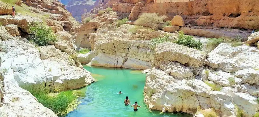 Combine your Wadi Shab adventure with nearby attractions like Wadi Tiwi, the Bimmah Sinkhole, and the coastal town of Sur. Each location offers unique scenery — from limestone craters to turtle nesting beaches.